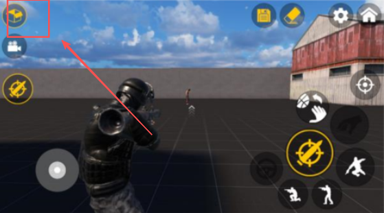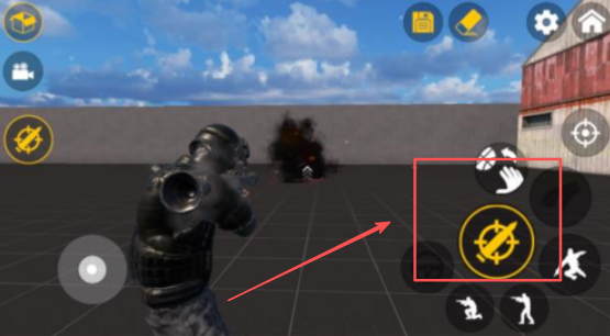 4、点击屏幕左上角的创造按钮,在弹出的面板中挑选需要的武器和道具,选择完成后瞄准目标点击射击按键发起攻击。