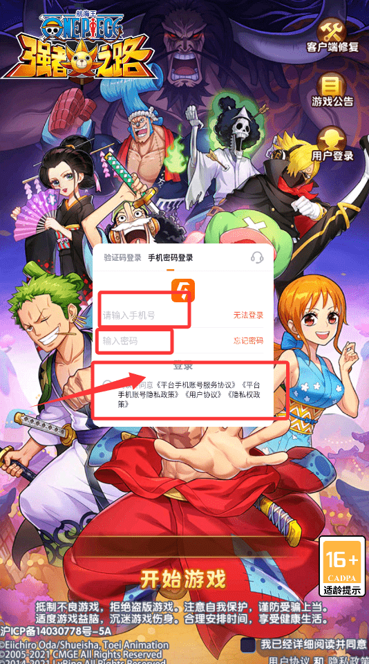 1、启动游戏后首要进行账户登录操作,界面会提供验证码与密码两种验证方式供选择。填写已注册的手机号码并完成相应验证步骤,同时确认勾选相关的用户协议与隐私政策条款。