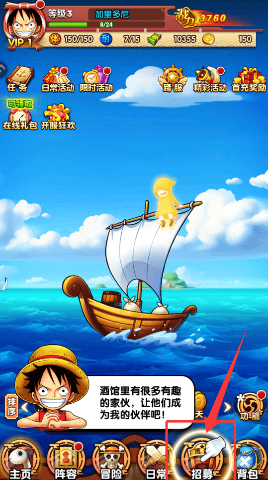 2、在游戏主界面下方的导航栏中,寻找到“酒馆”或“招募”功能入口并点击进入。系统通常会以提示或任务形式引导至此界面,这是获取新伙伴的核心途径。