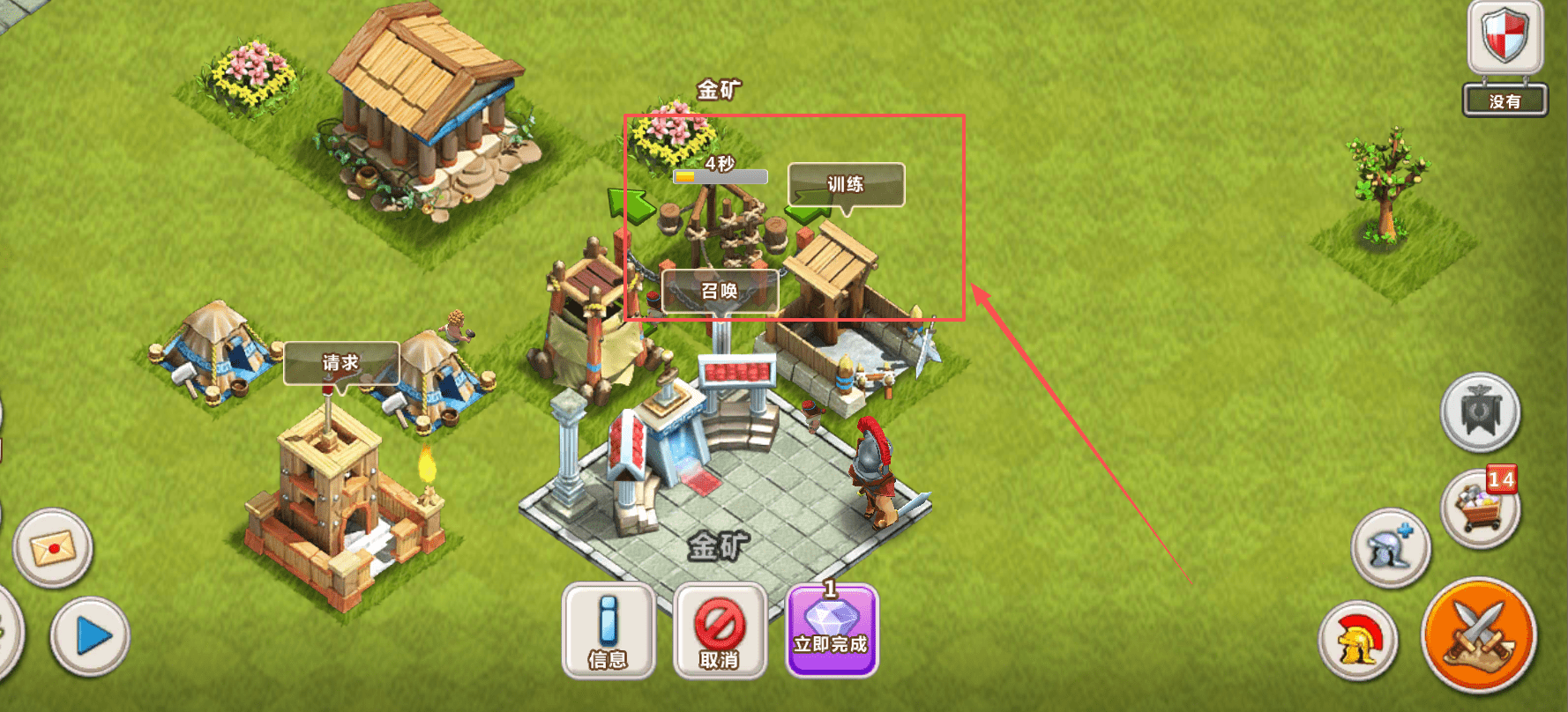 2、合理使用加速与立即完成功能。在建造或升级时,你可以看到倒计时,旁边有“立即完成”选项。