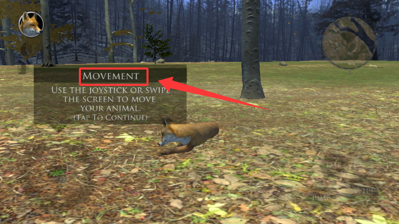 1、初次进入游戏需要熟悉基本操作,通过屏幕左侧的虚拟摇杆控制狐狸角色移动行走,点击右侧的奔跑按钮可让狐狸加速前进,但需注意耐力条的消耗情况,避免因体力耗尽而陷入。
