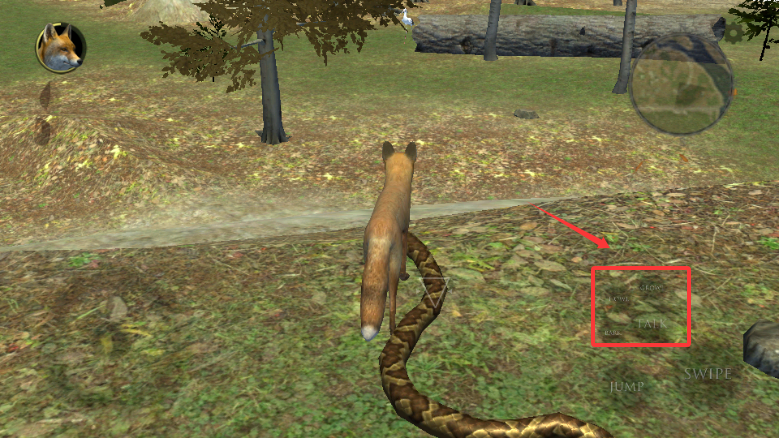 -摇杆控制你的狐狸行走,在寻找食物和资源的相应过程中;
