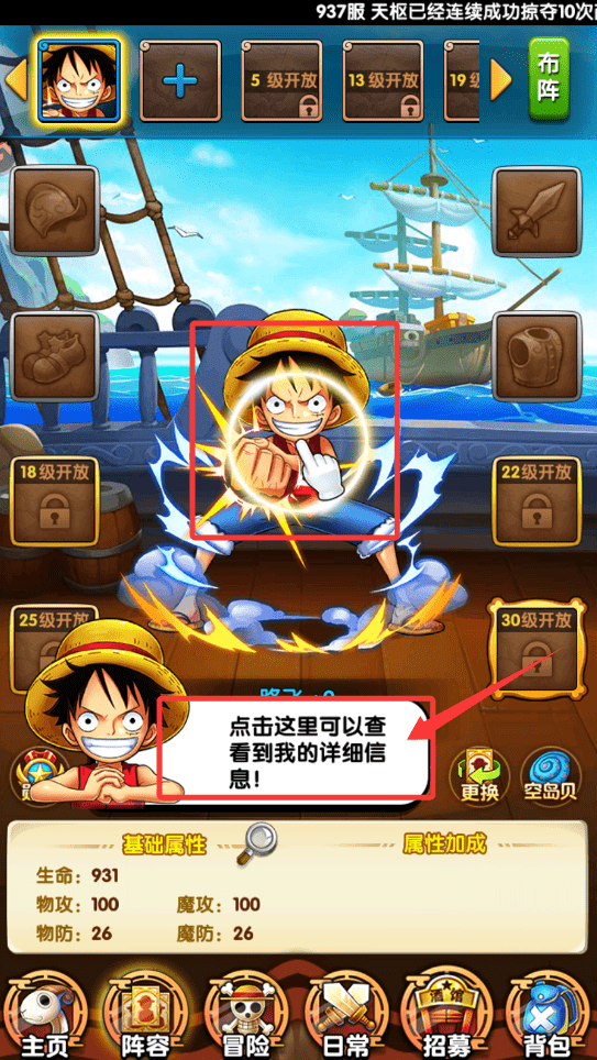 为了梦想百折不挠的“草帽小子”路飞、贯彻“武士道”精神的三刀流勇士佐罗、厨艺精湛的绅士海盗山智、古灵精怪的天才航海士奈美、擅长狙击的智慧型战斗员撒谎布、集力量与卖萌本领于一身的可爱驯鹿乔巴等草帽团成员与海军三大将、七武海、四皇共同登场,玩家可根据每位角色的不同特性,组合成各种超强团队阵容,驰骋伟大航路,探寻神秘宝藏!