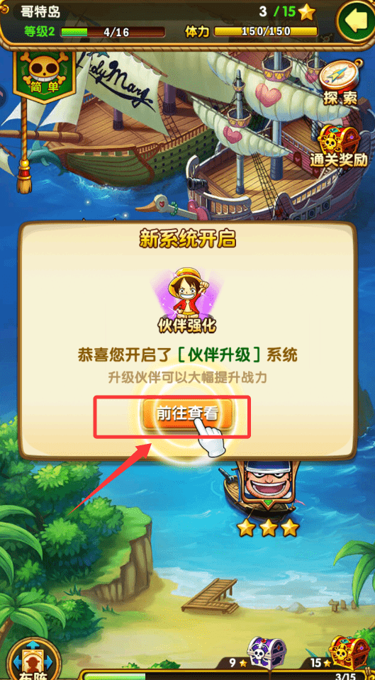 3、陆续解锁如伙伴强化等关键功能系统,有效提升队伍整体战斗能力。