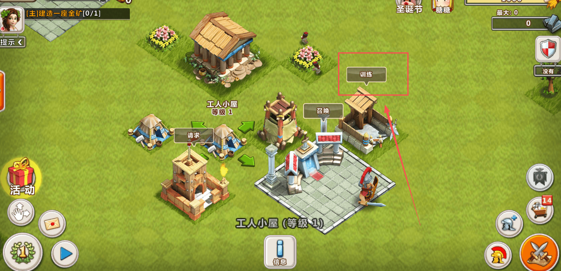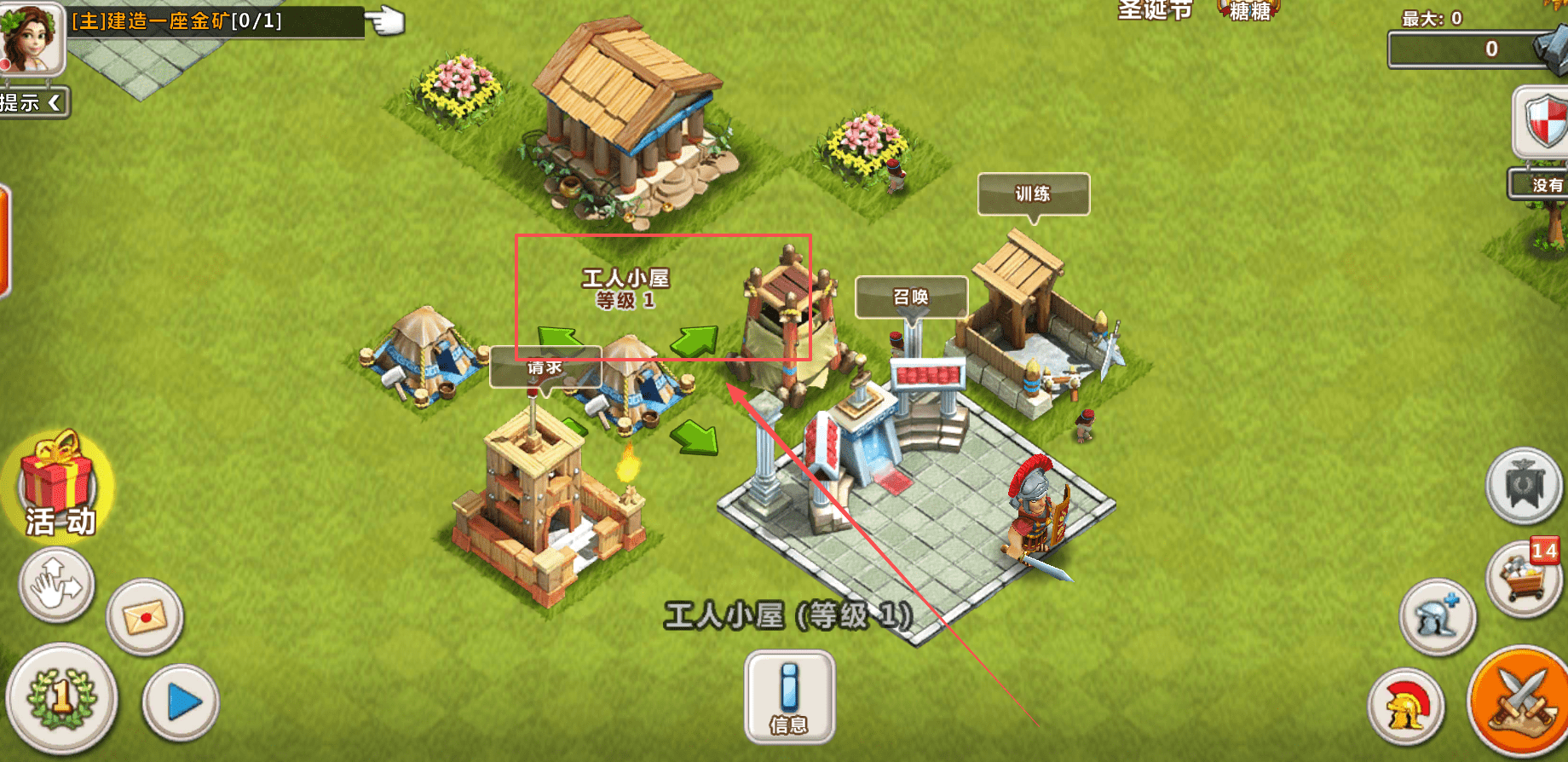 1、首先在主界面找到工人小屋,点击进入后能看到当前等级与建造任务。