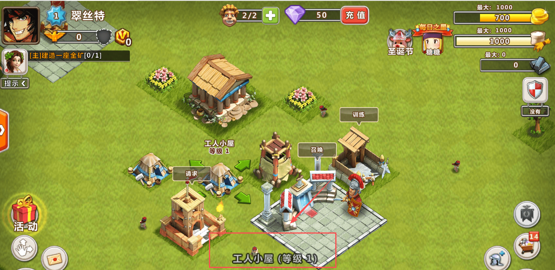 3、可以考虑“充值”或在“每日之星”等活动中领取奖励。合理使用资源,优先升级关键建筑如“工人小屋”到更高级别哦。