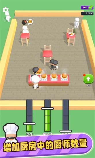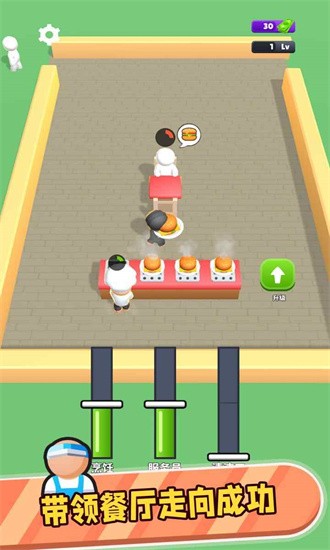 1、操作界面采用直觉化设计,拖拽食材完成组合装配,滑动控制煎烤时长,多订单并行处理考验时间管理能力。