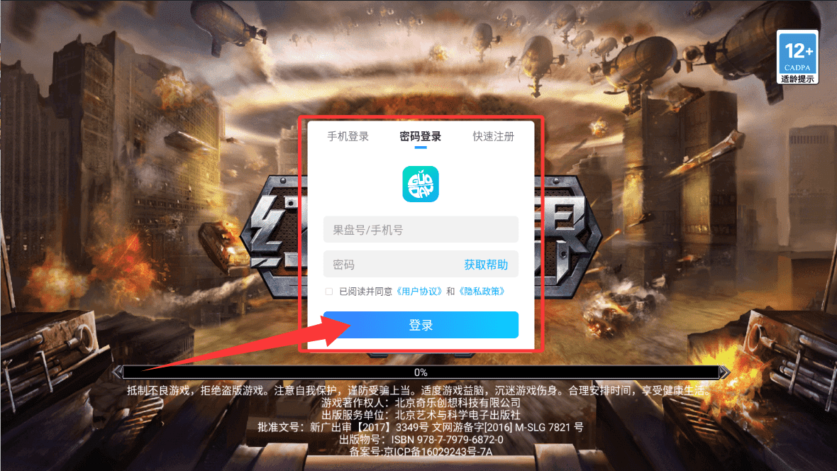 1、完成信息填写与协议确认后,点击界面中央的“登录”按钮。系统将验证账户信息并开始加载游戏资源,屏幕下方进度条会显示加载状态,完成后即正式进入游戏主场景。