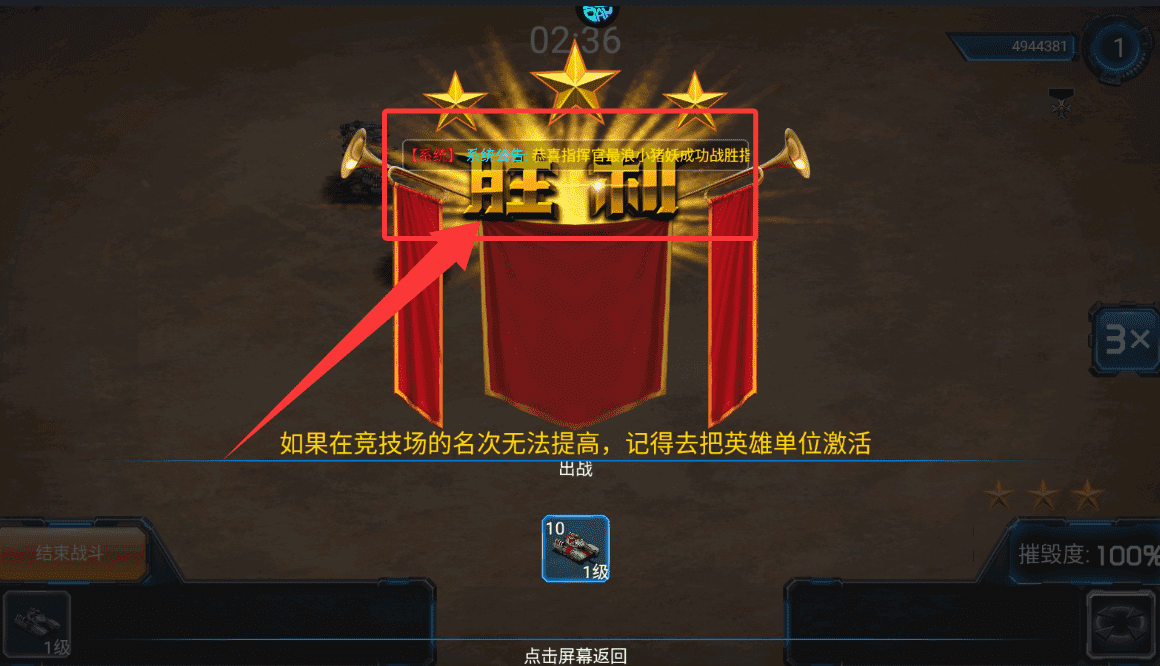3.当决出胜负后,系统会向所有指挥官推送消息,昭告天下谁赢得了司令宝座。