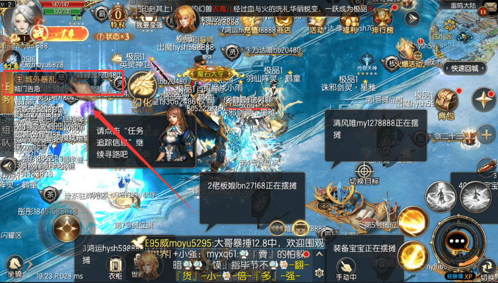 4、游戏界面含有角色状态,聊天、地图等功能,熟悉布局有助于更快操作和应对突发情况。