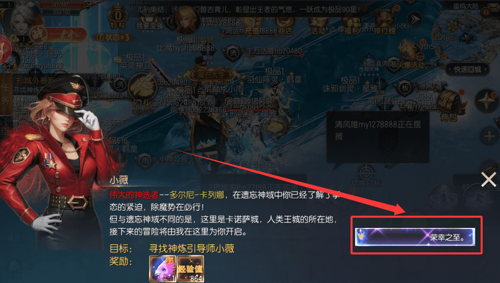 2、在主界面找到角色小薇的任务,按指引找到神炼引导师并完成任务领取经验奖励。