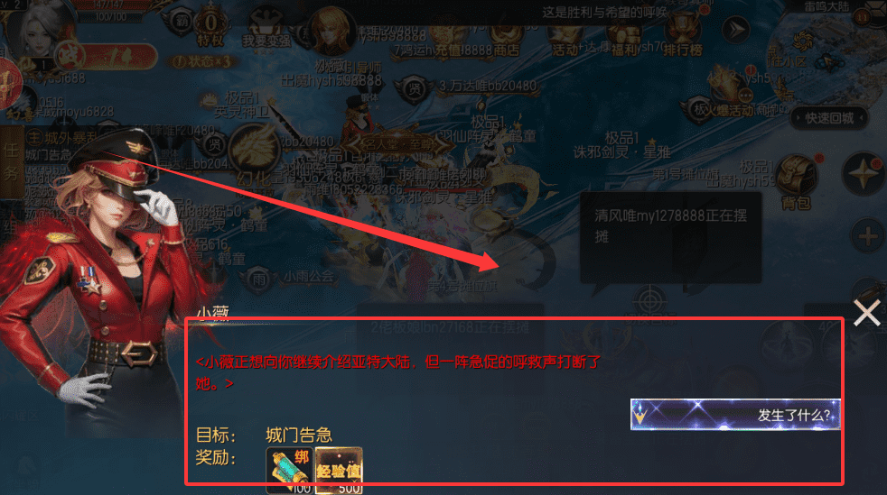 3、任务进行中可能会被突发事件打断,例如城门告急,注意查看目标与奖励提示。