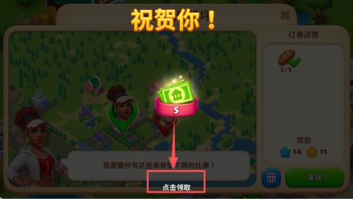 4、完成游戏的操作要求后,回到订单界面,点击 “点击领取” 按钮获取对应的绿钞奖励。