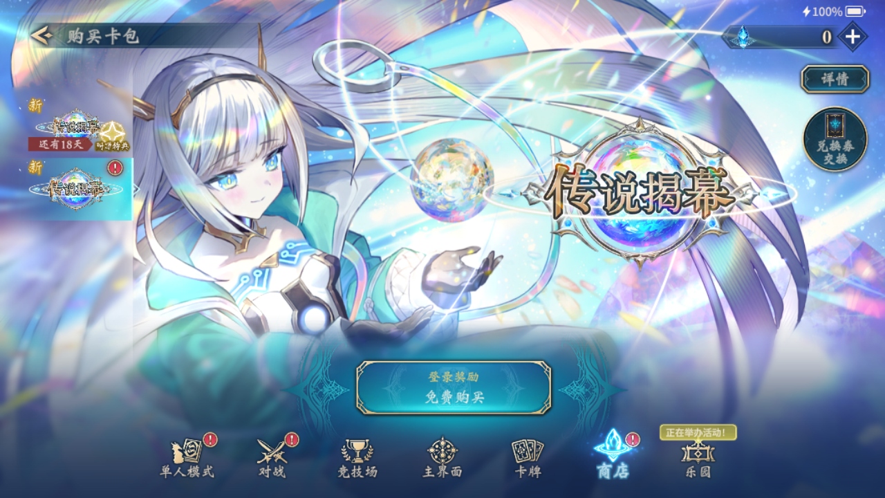 六、商店:附加内容、购买卡包、购买水晶。附加内容大致为购买不同类别的卡背以及主站者造型的选项,需要消耗金币以及相对应的钻石进行消费,同时有部分活动卡背可免费购买