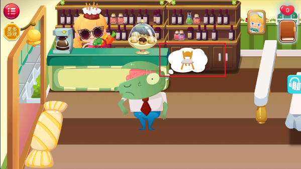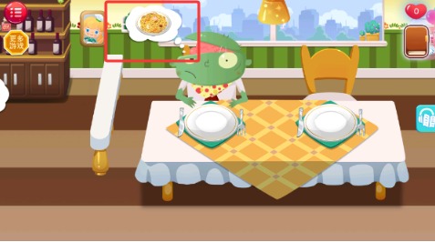 2、客人入座后,注意观察界面左上角显示出的食物或饮品图标。这代表了这位顾客当前想要点单和享用的具体餐品类型。