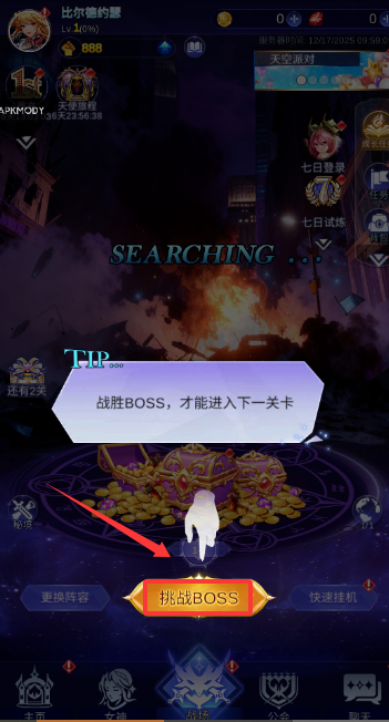3、主线推进依赖挑战各类BOSS,战斗采用自动回合制,需确保天使法力值充足以释放技能,并在限定回合内完成击杀;开启闲置战斗模式后,即使离线角色也会自动获取经验。