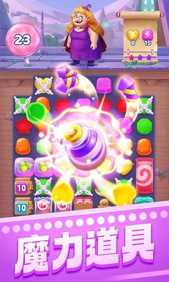 糖果小镇的繁华集市被女巫破坏成了废墟,作为糖果王国的一份子,更是集市的管理者,我们必须帮助宾果击败邪恶的女巫,重建集市!