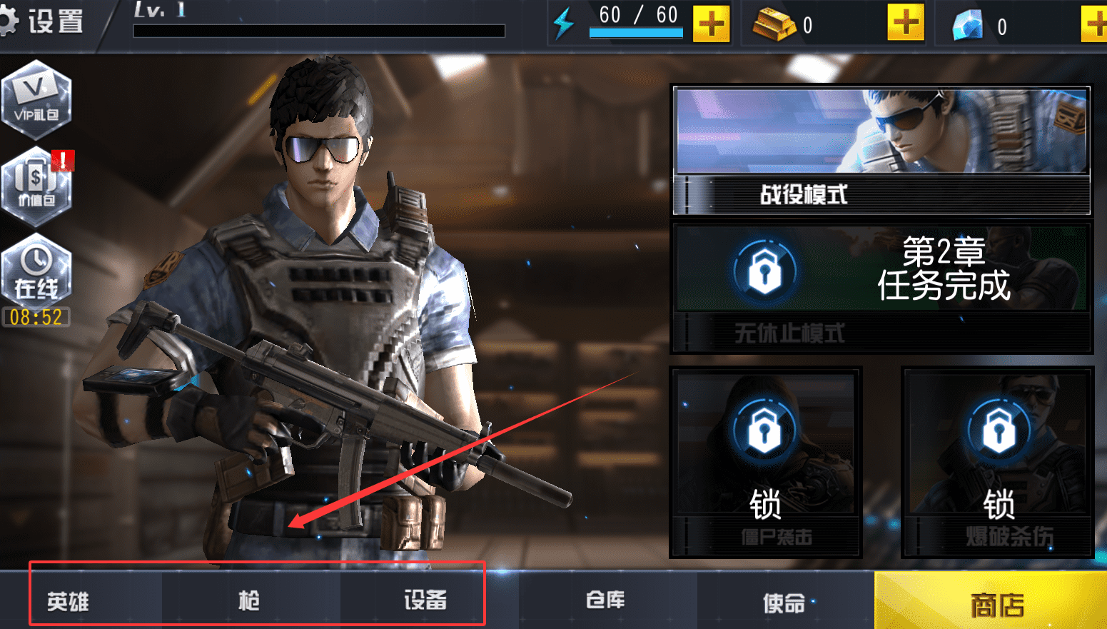 4、综合来看,这款游戏包含角色装备、多种模式与实时战斗要素,你可以通过推进战役解锁内容,在仓库中搭配武器。