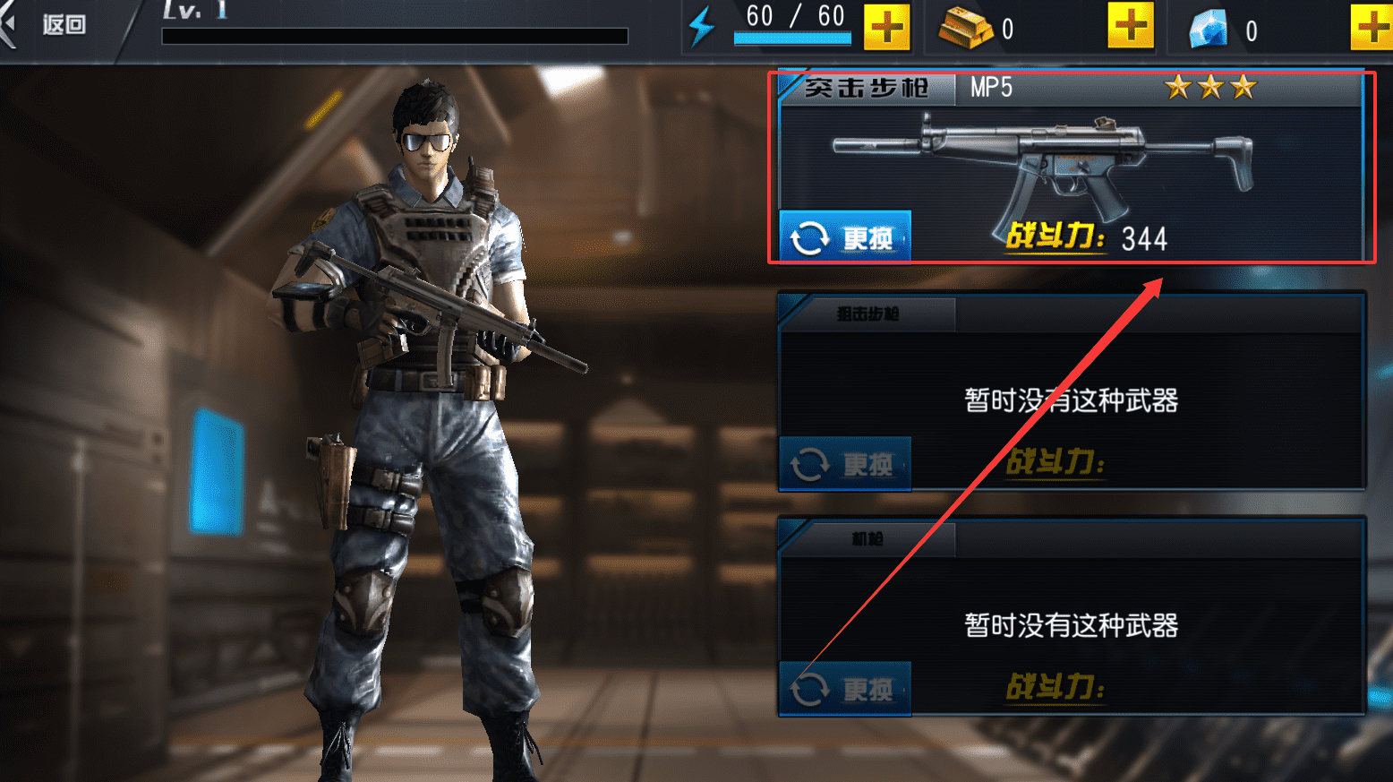 1、从第一张图片可以看到游戏内的武器与角色界面,上面显示了mp5突击步枪。