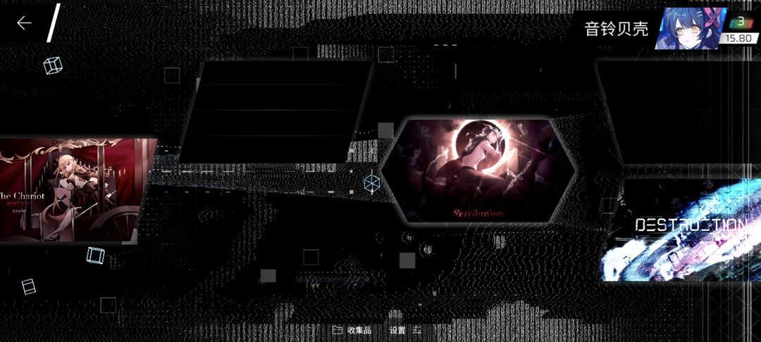 再次进入游戏后初始背景变成了纯黑,进入第八章也发生了变化,刚刚解锁的新曲背景出现了乱码,第三个曲绘框开放解锁,出现了新的方向。
