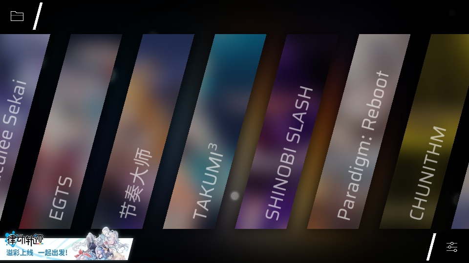 首先进入游戏点开第八章,可以发现此时并没有封面的曲绘,平时的play变成来boot,直接点击进入第八章。之后就可以看见第八章的解锁UI系统,但没有任何曲绘,可以看到最左边的曲绘展示框有白线闪烁;