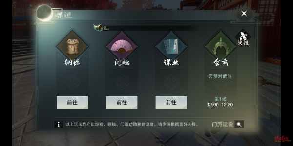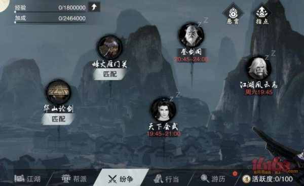需要指出,万里听风,寻道(武当的单人门派任务),江湖纪事,帮派任务属于可挂机休闲玩法;其实除了万里听风可以全程挂机,