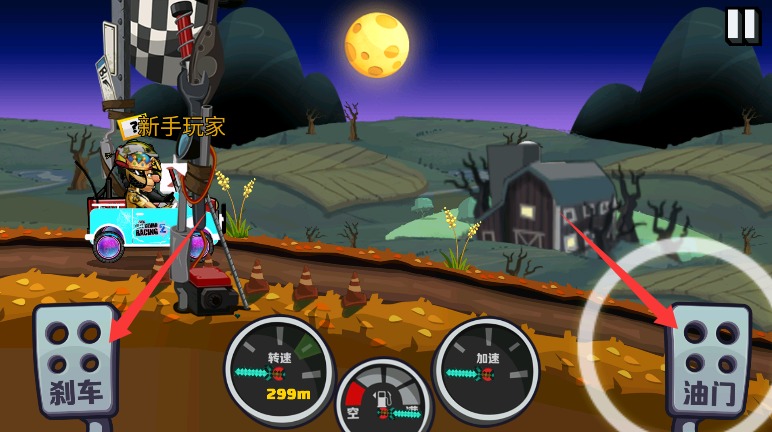 2、通过左侧刹车与右侧油门按键控制,控制赛车的前进速度与制动效果性能。