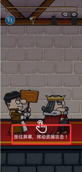 当角色走进国王时,长按屏幕,当上面的蓄力条满时,角色挥刀刺向国王,在蓄力期间,一旦发现国王有回头的动作,手指要赶紧离开屏幕,以防被抓