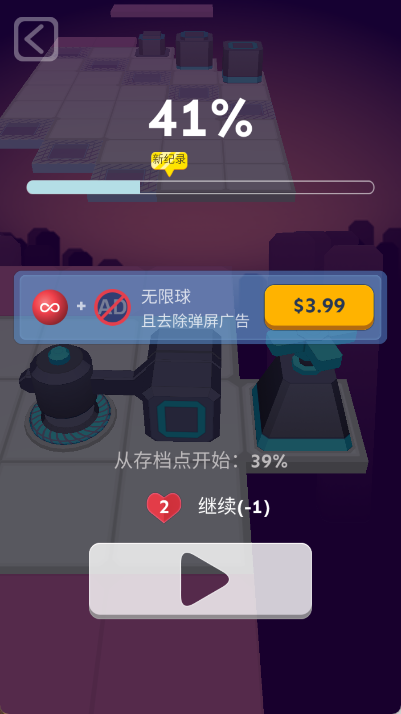 极简的操作方式,用手指左右移动球体穿越障碍,挑战你的反应能力;