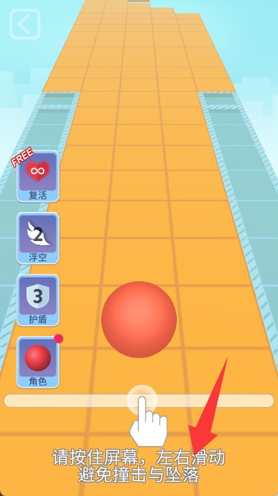 3、进入关卡后,通过左右滑动屏幕控制小球移动,避开障碍物并收集钻石。