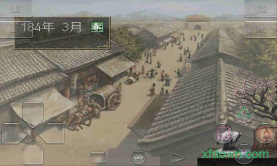 3、通过虚拟方向键与功能按钮操控内政、军事、外交等指令,完成势力经营与统一目标。