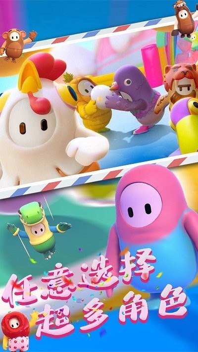 1、主打糖豆人跳跃闯关竞技玩法,玩家操控酷萌造型的糖豆人参与对决,可爱的角色形象能快速吸引玩家注意力。