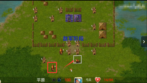 1、敌军阶段看平原一百兵,血条四,别急着冲,先看清对面站位。