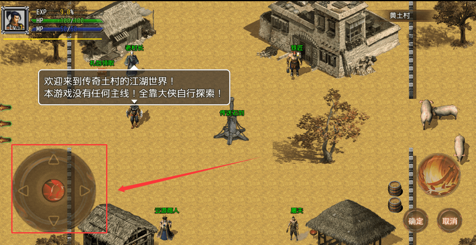 3、游戏的核心玩法是自由探索,所以不需要急着找任务,可以先在黄土村到处走走,和村民对话,熟悉一下操作和界面。