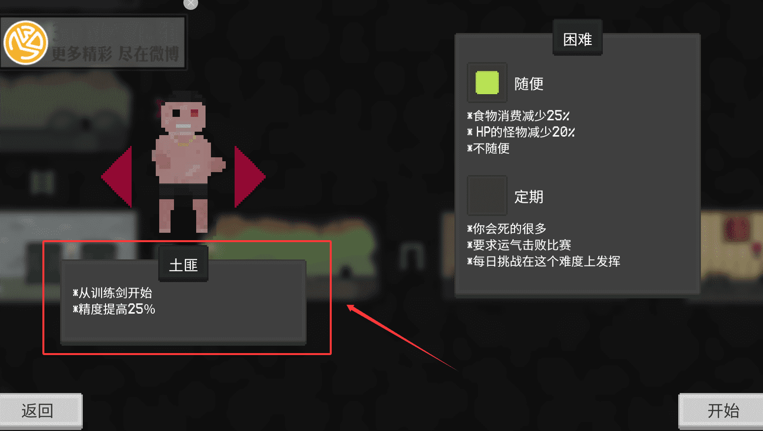 3、在难度选择页面,你可以仔细查看每个模式的特性和增减益效果,例如土匪模式会从训练剑开始并提高精度。