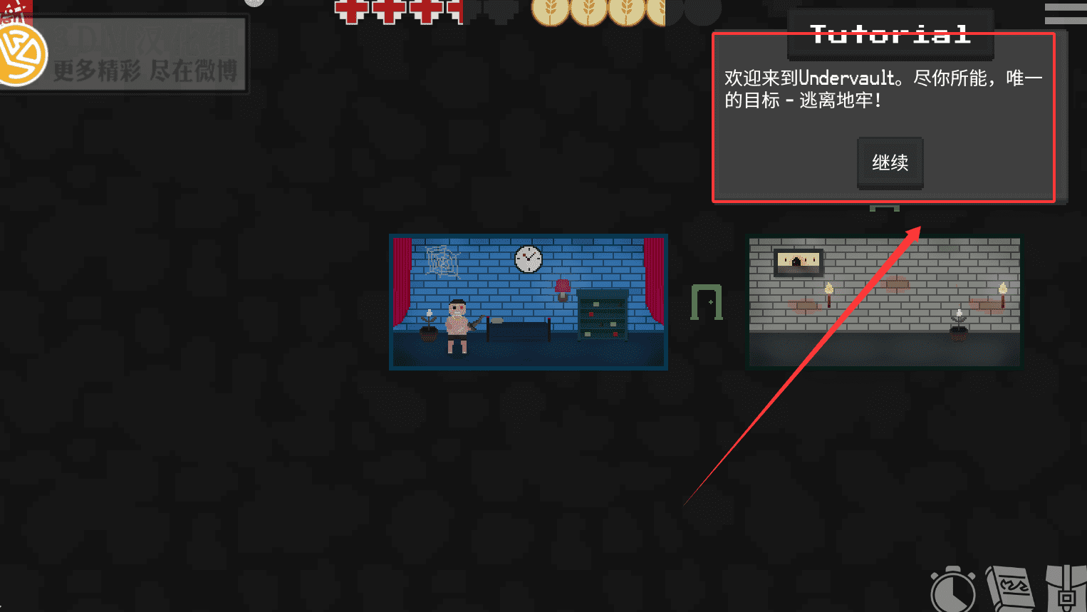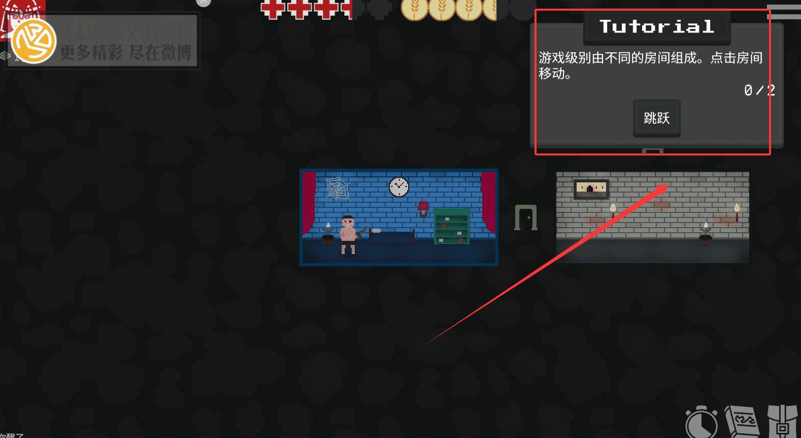4、整个游戏的核心流程就是接受教程指导、选择合适难度、通过点击房间进行移动与战斗,并最终设法逃离地牢。