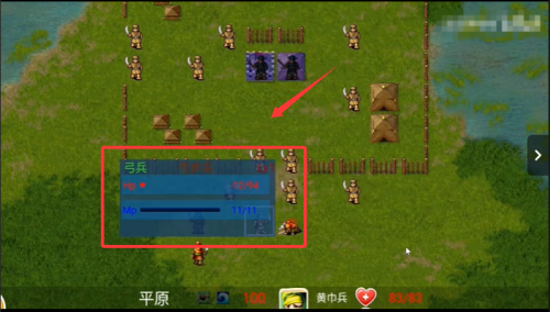 3、平原首战遇黄巾兵,血条八十三,先存档再布阵,稳过新手关。