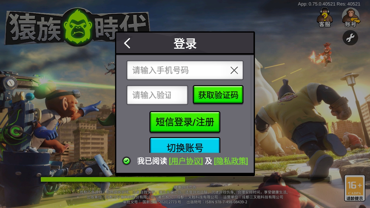 2.以手机登录为例子,输入手机号码获得验证码就能进入游戏了。其他方式同理。