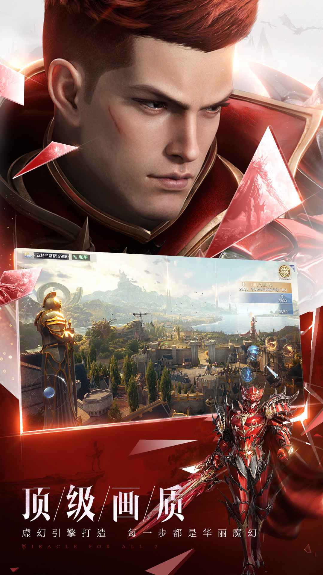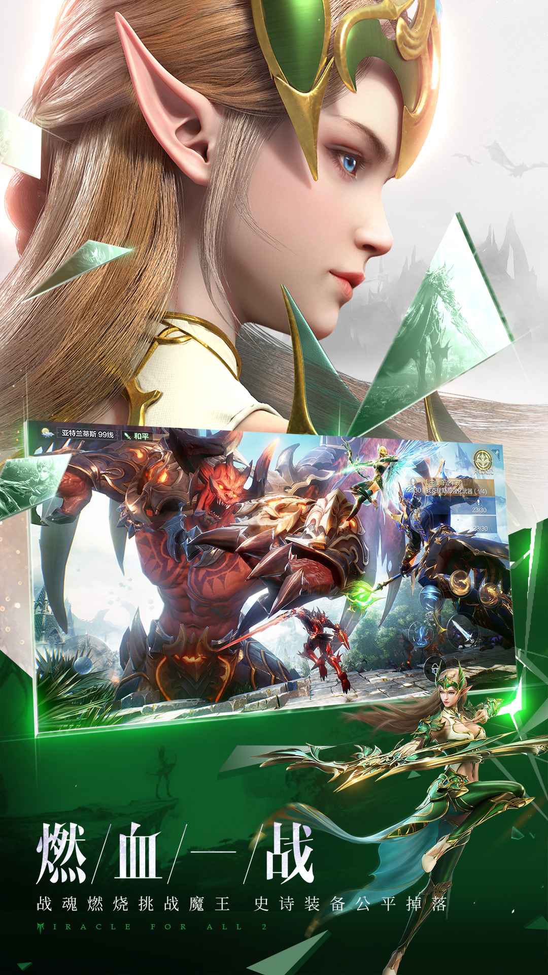 1.全民奇迹2是一款华丽魔幻的下一代MMO手机游戏;